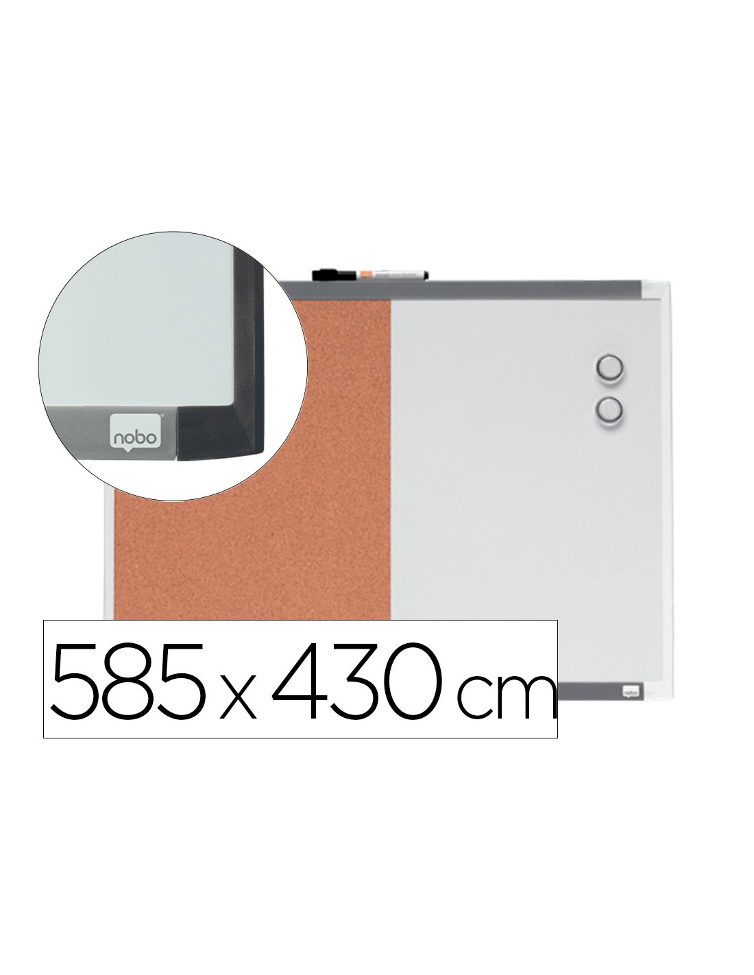 Pizarra blanca nobo magnetica con tablero de corcho 585x430 mm