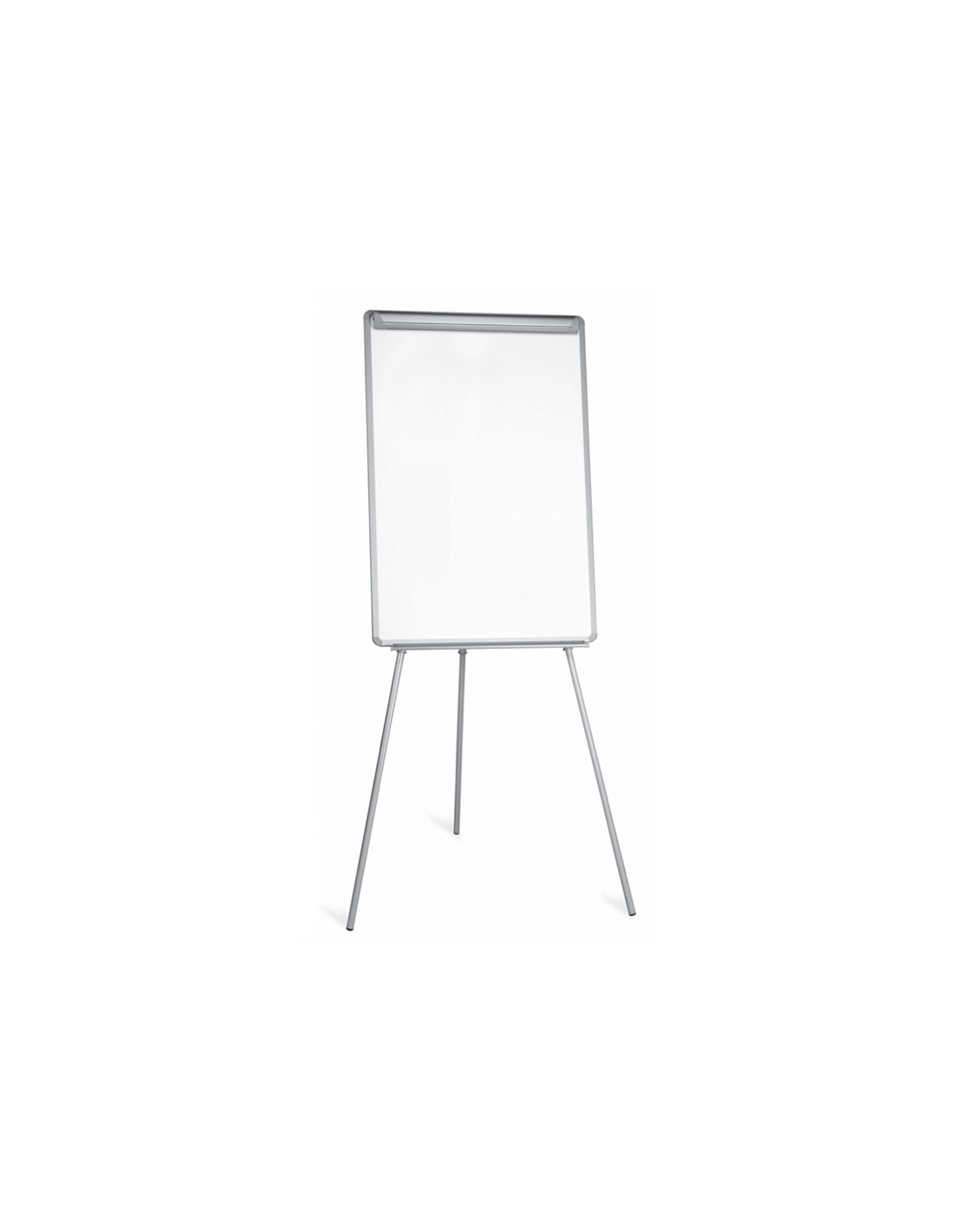 Pissarra trípode amb marc i safata en alumini anoditzat natural. Amb dos braços laterals extensibles i magnètics que tripliquen la superfície de lectura. Superfície disponible en acabat laminat no magnètic o lacat magnètic. Apta per a l'escriptura amb ret