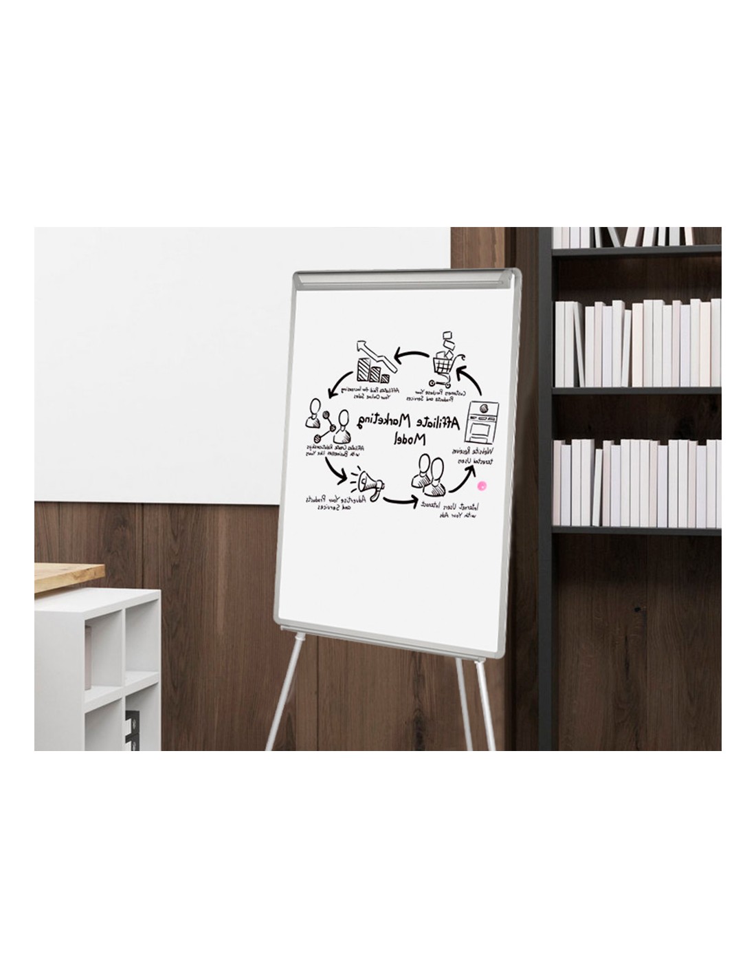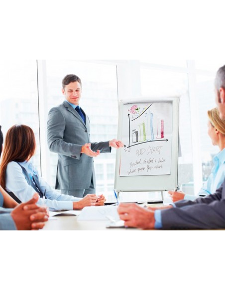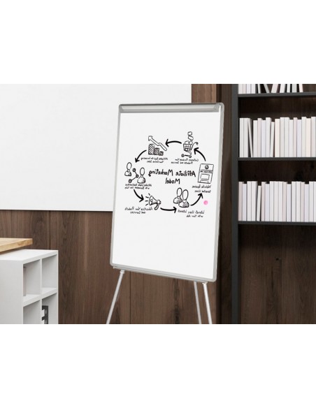 Pissarra blanca q-connect amb tripode regulable 90x70x195cm i braços extensibles per a conferències superfície lacada