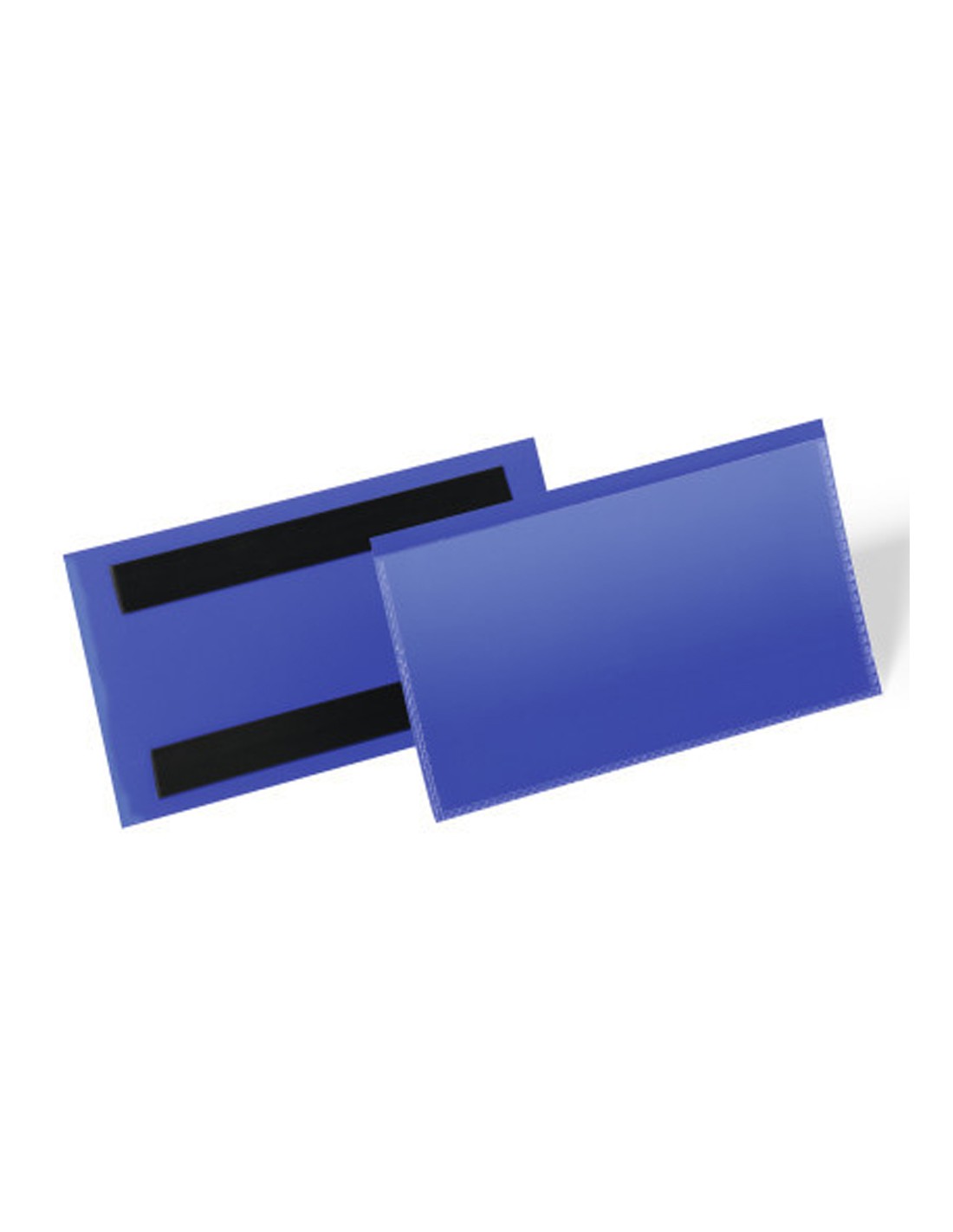 Funda magnética. Fabricada en plástico azul en la parte posterior y ventanilla transparente delantera de polipropileno resistente. Fuerte sujeción gracias a las dos tiras magnéticas. Uso en superficies metálicas, como estanterías de almacenes y contenedores metálicos. Fácil intercambio de etiquetas. Color azul oscuro. El pack de 50 unidades.