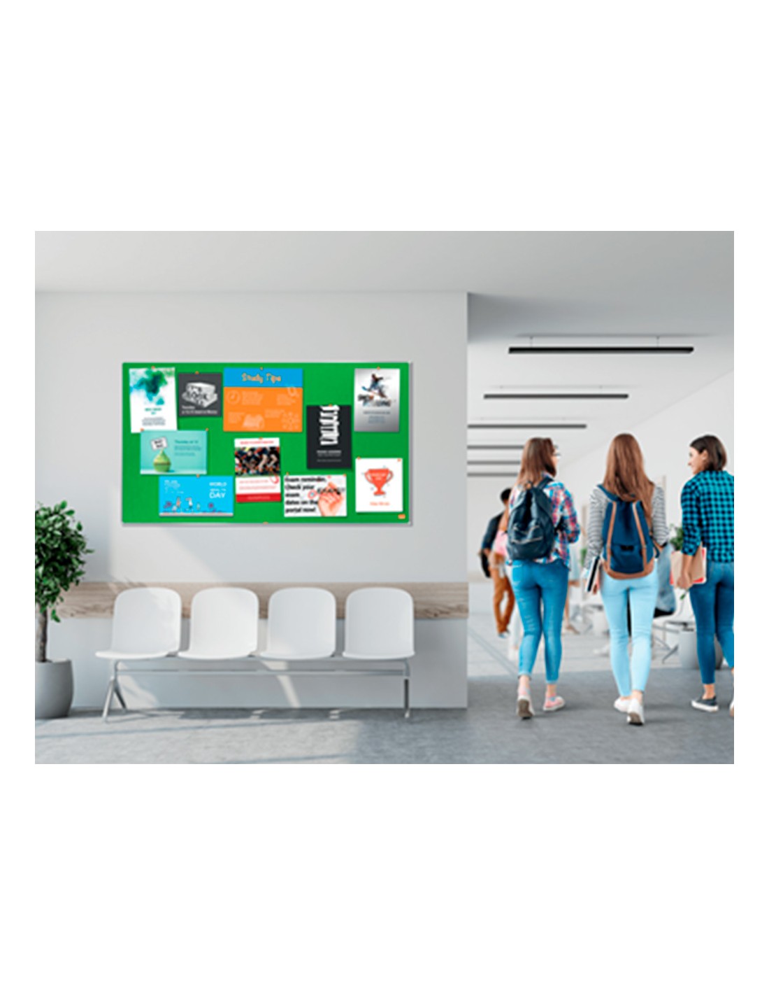 Tablero de anuncios de fieltro de formato panorámico con un marco contemporáneo fino y discreto que ofrece una superficie de visualización más accesible y extensa. El sistema InvisaMount facilita la instalación y los soportes de sujeción están cuidadosamente ocultos tras el tablero. Tablero de anuncios con una excelente superficie de fieltro para fijar y mostrar tus avisos. Medidas 890x500mm.