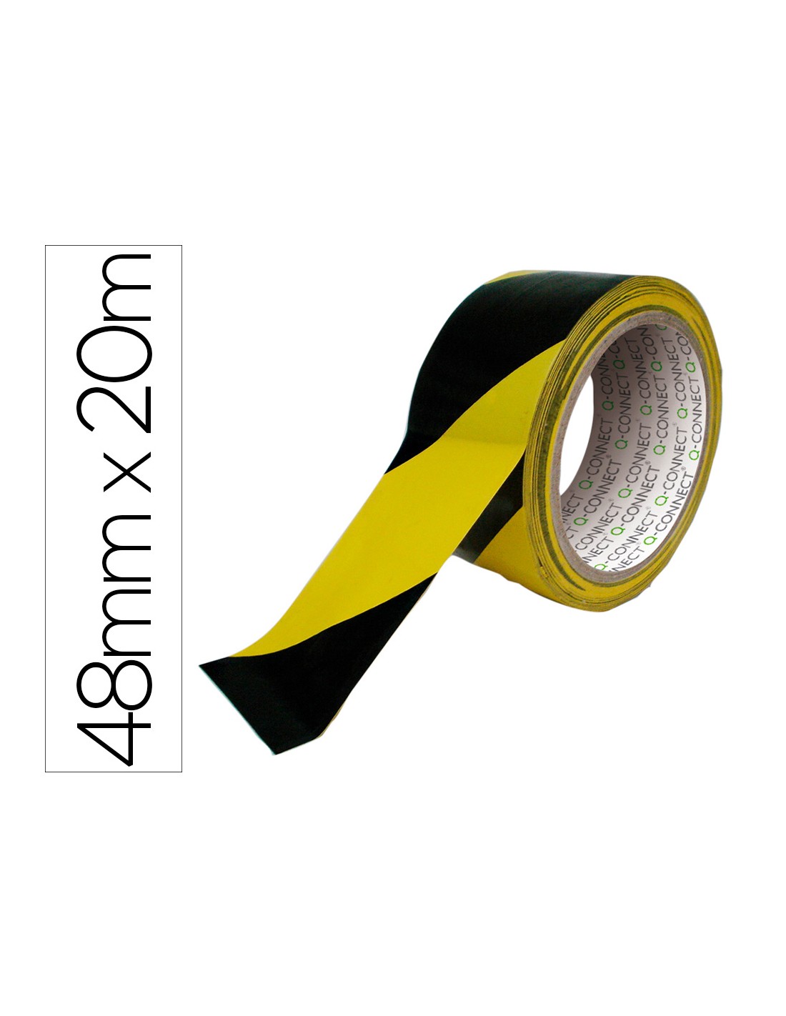 Cinta adhesiva q-connect de seguridad amarilla y negra 20 mt x 48 mm