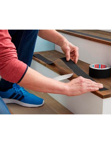 Cinta antideslizante adhesiva tesa uso interior / exterior color negro 15 mt x 25 mm