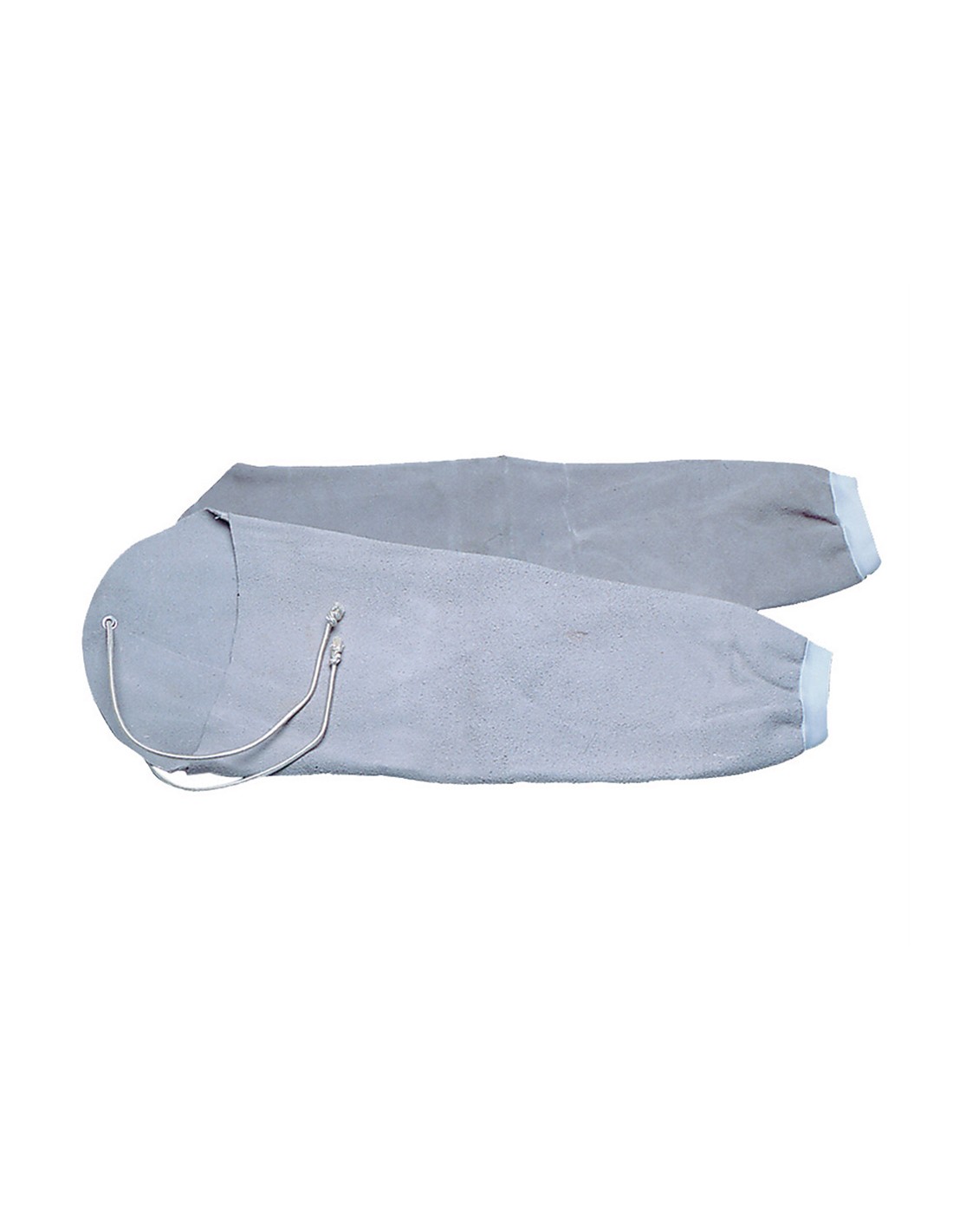 Manguito para soldador de cuero al cromo, destinado a la protección del brazo, desde la muñeca hasta el hombro, con puño elástico y cordón.