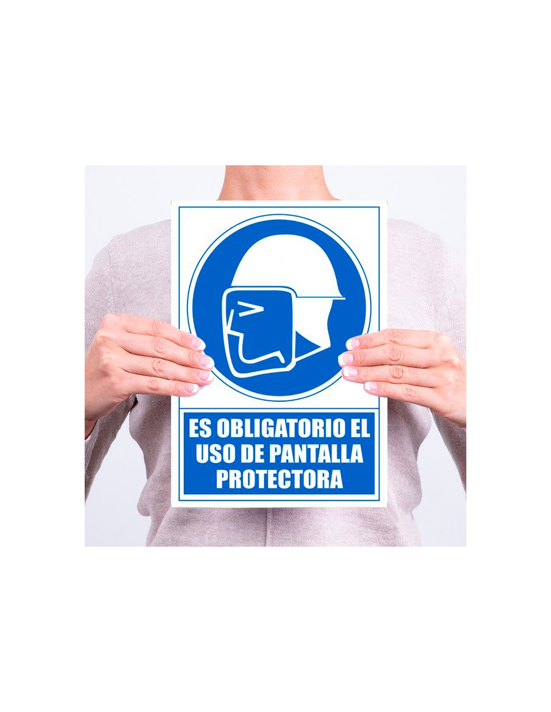 Señal Obligatorio el uso de pantalla protectora Archivo 2000. Serigrafiada a 1 tinta. Fabricada en PVC. Perfecta visibilidad a larga distancia. 210 x 297mm