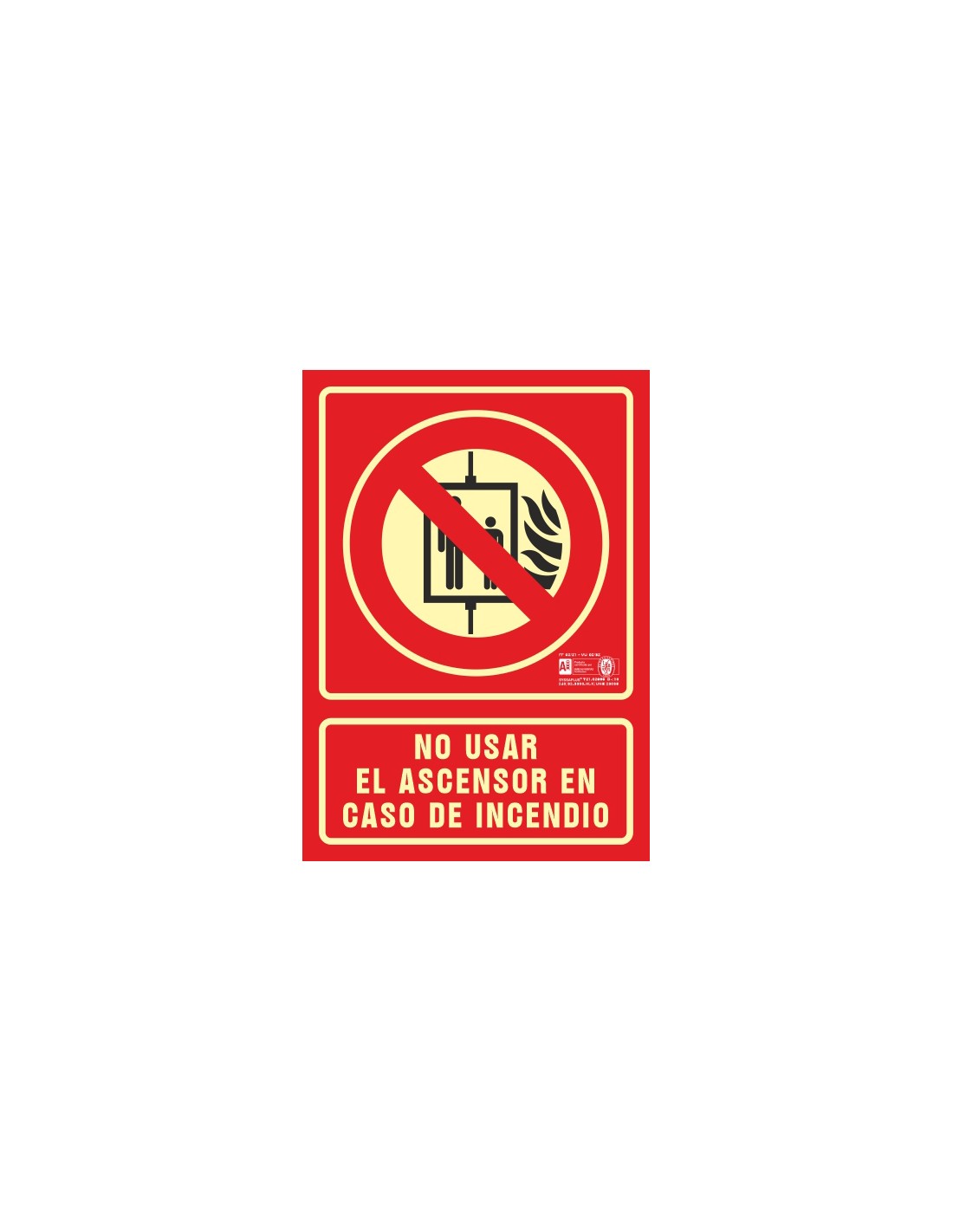 Pictograma syssa señal de no utilizar en caso de incendio en pvc fotoluminiscente 210x297 mm