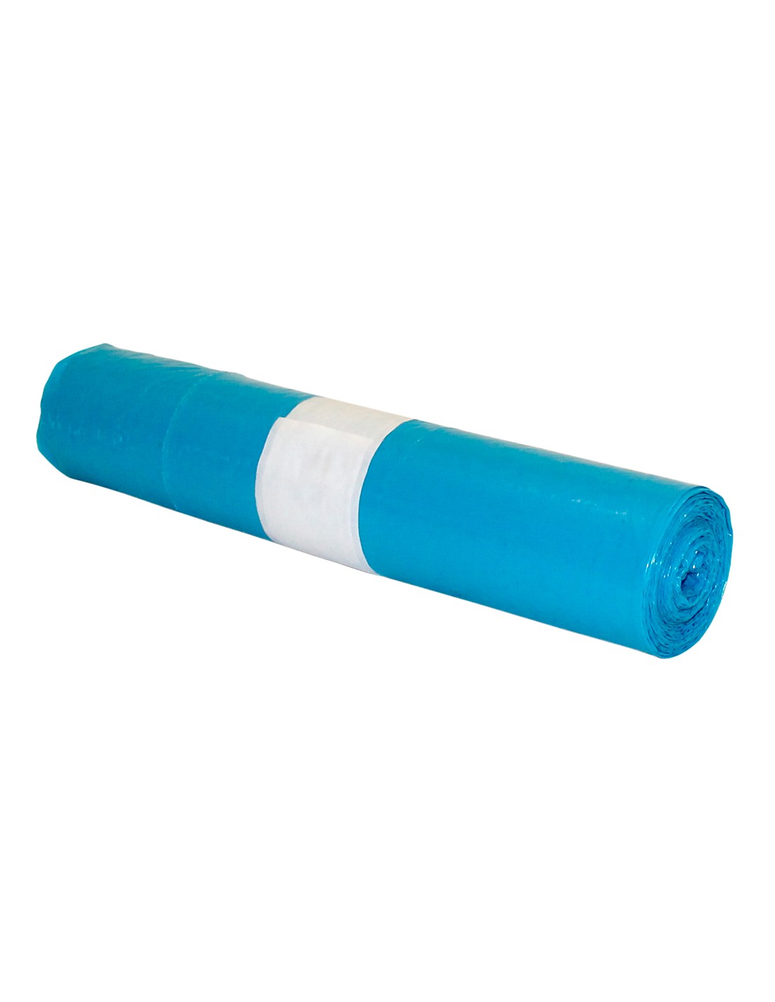 Bolsa de basura industrial color azul con galga 110. Rollo de 10 bolsas de70x90 cm con 50 litros de capacidad.