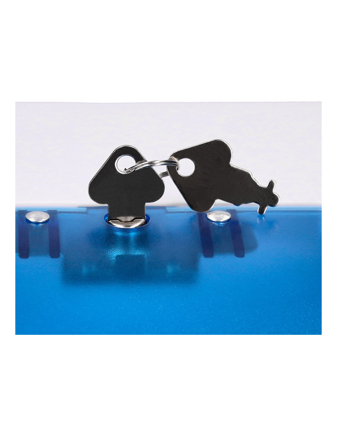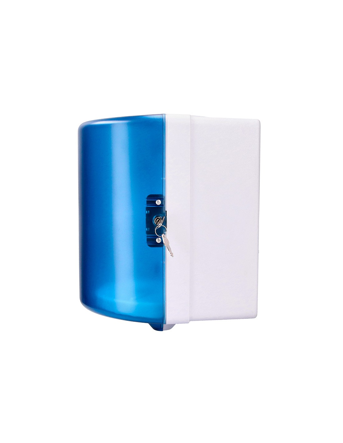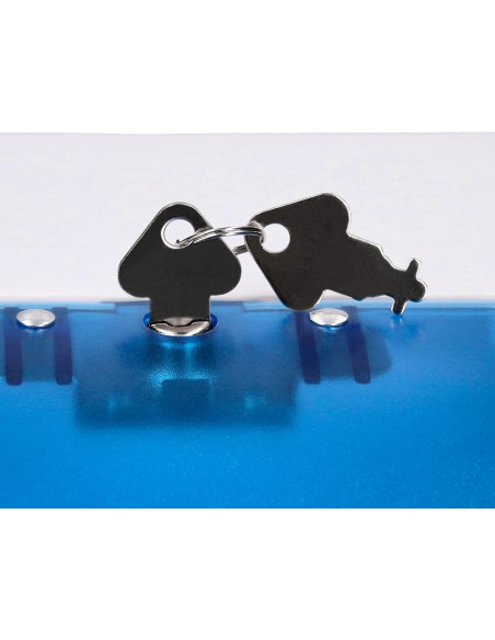 Puerta con cerradura y 2 llaves para sustituir el recambio. Color cubierta azul / base blanca. Medidas 225 x 275 x 220 mm.